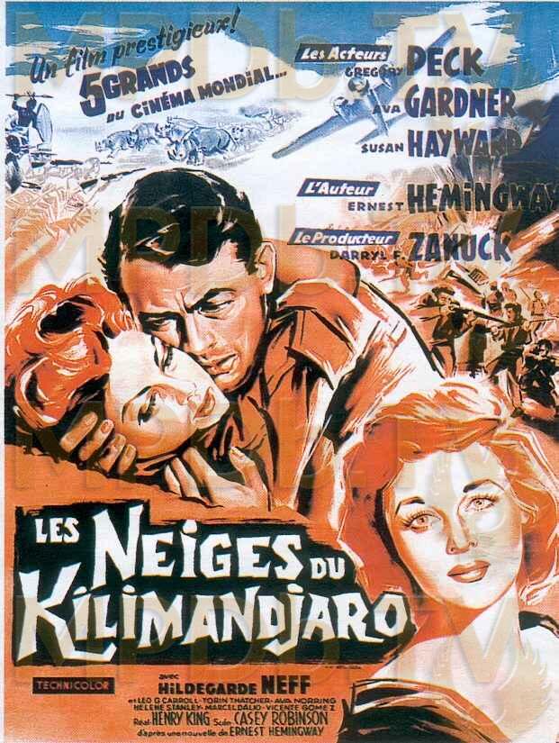 Dans un camp de chasseurs, au pied du Kilimandjaro, l'aventurier ecrivain Harry Street attend de passer de vie à trepas immobilisé par une blessure qui s'est envenimée. Aide par le whisky et sa femme, Helen, Harry tente de surmonter l'horreur qui lui inspire la crainte de mourir en rate. En attendant d'hypothétiques secours, Harry se remémore son passé.
