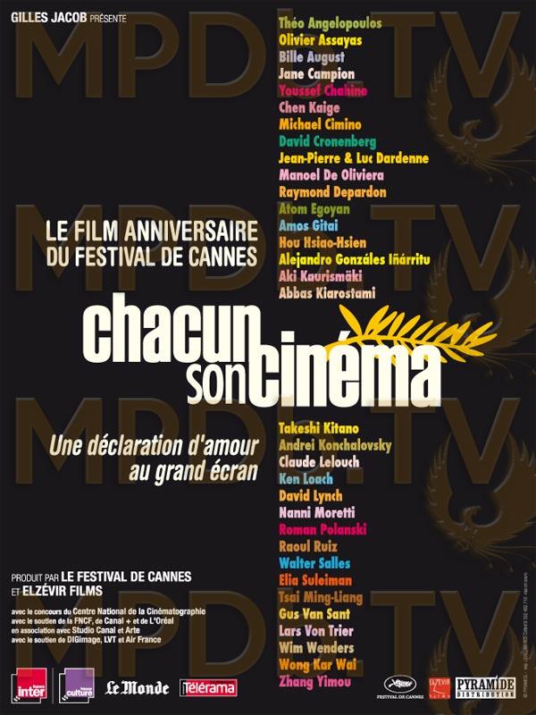 Film anniversaire réalisé à l'occasion des 60 ans du Festival de Cannes. 34 cinéastes, issus de 25 pays, ont réalisé chacun un court métrage de 3 minutes autour du thème de la salle de cinéma.Les 33 films sont :Trois minutes de Theo AngelopoulosRecrudescence d'Olivier AssayasThe Last dating show de Bille AugustThe Lady bug de Jane Campion47 ans après de Youssef ChahineNo translation needed de Michael CiminoAt the suicide of the last Jew in the world in the last cinema in the world de David CronenbergDans l'obscurité de Jean-Pierre et Luc DardenneRencontre unique de Manoel de OliveiraCinéma d'été de Raymond DepardonArtaud double bill d'Atom EgoyanLe Dibbouk de Haïfa d'Amos GitaiThe Electric princess house de Hou Hsiao-Hsien Anna d'Alejandro Gonzalez InarrituZhanxiou village de Chen KaigeI travelled 9 000 km to give it to you de Wong Kar-WaiLa Fonderie d'Aki KaürismakiWhere is my Romeo ? d'Abbas KiarostamiOne fine day de Takeshi KitanoDans le noir d'Andrei KonchalovskyCinéma de boulevard de Claude LelouchHappy ending de Ken LoachIt's a dream de Tsai Ming-LiangDiario di uno spettatore de Nanni MorettiCinéma érotique de Roman PolanskiA 8944 de Cannes de Walter SallesLe Don de Raul RuizIrtebak d'Elia SuleimanFirst kiss de Gus Van SantOccupations de Lars Von TrierEn regardant le film de Zhang YimouAbsurda de David Lynch