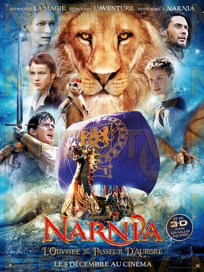 Happés à l'intérieur d'un intriguant tableau, Edmund et Lucy Pevensie, ainsi que leur détestable cousin Eustache, se retrouvent subitement projetés dans le royaume de Narnia, à bord d'un navire majestueux : le Passeur d'Aurore. Rejoignant Caspian, devenu roi, et l'intrépide souris guerrière Ripitchip, ils embarquent pour une périlleuse mission dont dépend le sort même de Narnia. A la recherche de sept seigneurs disparus, nos voyageurs entament un envoûtant périple vers les îles mystérieuses de l'Est, où ils ne manqueront pas de rencontrer tant de créatures magiques que de merveilles inimaginables. Mais ils devront surtout vaincre leurs peurs les plus profondes en affrontant de sinistres ennemis, tout en résistant à de terribles tentations auxquelles ils seront confrontés. Il est temps pour eux de faire preuve d'un courage légendaire au cours d'une odyssée qui les transformera à jamais et les emportera au bout du monde, où le grand Lion Aslan les attend.