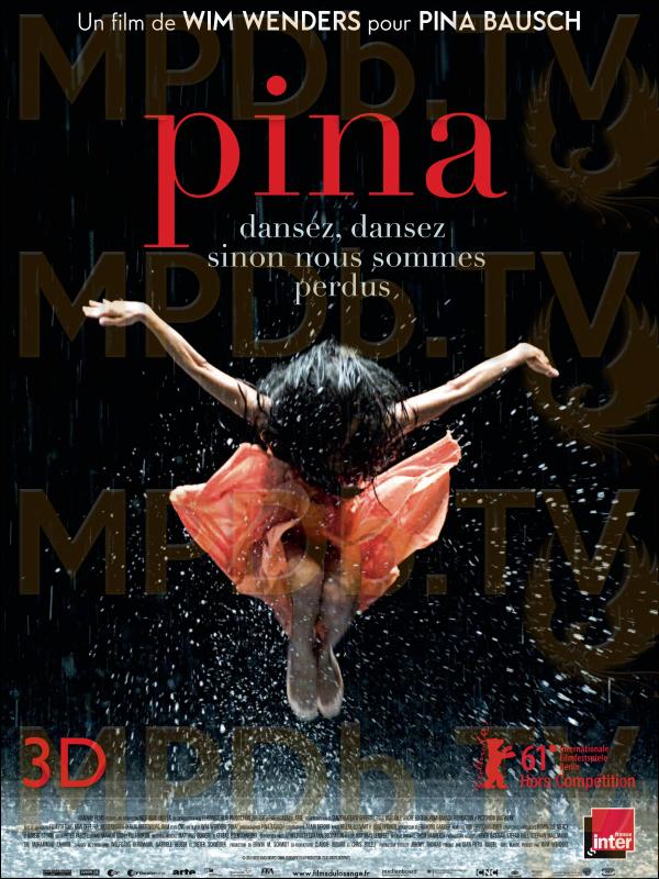 PINA est un film pour Pina Bausch de Wim Wenders.C'est un film dansé en 3D, porté par l'Ensemble du Tanztheater Wuppertal et l'art singulier de sa chorégraphe disparue à l'été 2009.Ses images nous convient à un voyage au coeur d'une nouvelle dimension, d'abord sur la scène de ce légendaire Ensemble, puis hors du théâtre, avec les danseurs, dans la ville de Wuppertal et ses environs - cet endroit dont Pina Bausch a fait son port d'attache durant 35 ans et où elle a puisé sa force créatrice.