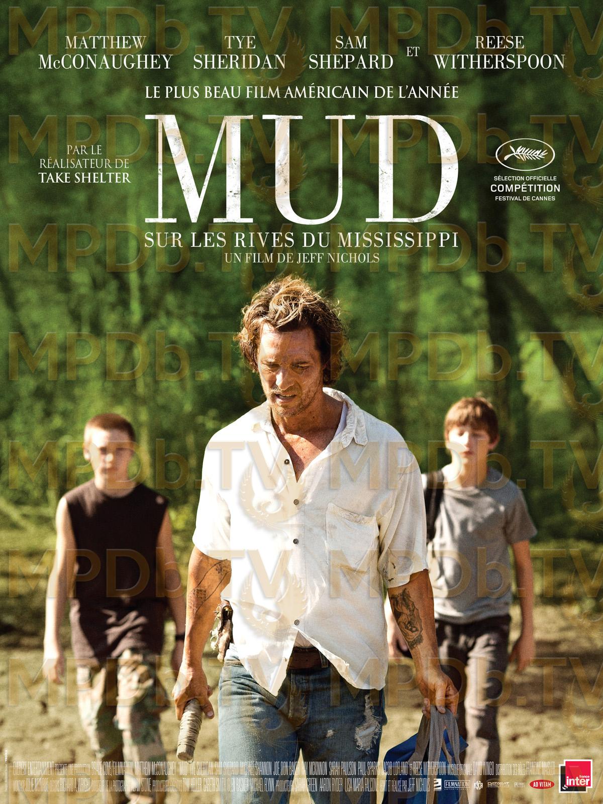 Ellis et Neckbone, 14 ans, découvrent, un homme réfugié sur une île au milieu du Mississipi. C’est Mud : un serpent tatoué sur le bras, un flingue et une chemise porte-bonheur. C’est aussi un homme qui croit en l’amour, une croyance à laquelle Ellis a désespérément besoin de se raccrocher, pour tenter d’oublier les tensions quotidiennes entre ses parents. Très vite, Mud met les deux adolescents à contribution pour réparer un bateau qui lui permettra de quitter l’île. Difficile cependant pour les garçons de déceler le vrai du faux dans les paroles de Mud. A-t-il vraiment tué un homme ? Est-il poursuivi par la justice, par des chasseurs de primes ? Et qui est donc cette fille mystérieuse qui vient de débarquer dans leur petite ville de l’Arkansas ?