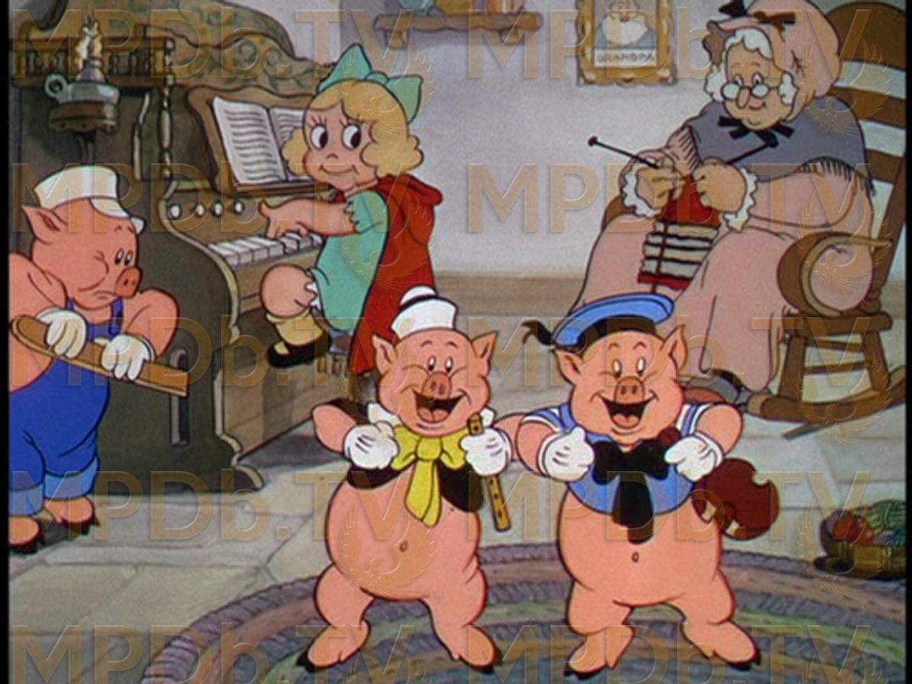 Le petit chaperon rouge rencontre les trois petits cochons sur le chemin la menant à la maison de sa grand-mère. Naf-Naf, le cochon pratique préfereait prendre le long chemin pour éviter les bois mais le reste de la troupe préfère prendre le raccourci, boisé. Surgi alors le Grand Méchant Loup, les cochons s'enfuient alors abandonnant le petit chaperon. Le loup la poursuit jusuq'à la maison de la grand-mère. Il parvient à les enfermer dans la garde-robe en vue de les manger. Heureusement, le cochon pratique arrive et met du pop-corn et des braises brûlantes dans le pantalon du loup qui s'enfuit en hurlant. La grand-mère et le petit chaperon rouge sont sauvées.