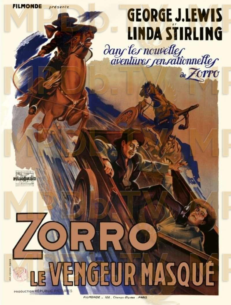 (Sérial en 12 épisodes présenté en France en deux parties: ZORRO LE VENGEUR MASQUE et ZORRO ET LA FEMME AU MASQUE NOIR). Propriétaire d'une compagnie de diligences, Dan Hammond est résolument opposé à ce que l'Idaho devienne un État des États-Unis, au point de faire supprimer par ses hommes de main le directeur du journal de la ville, Randolph Meredith. Après l'assassinat de son frère, Barbara Merdith prend la direction du journal et dénonce avec virulence les agissements du gang de Hammond. Vic Gordon, un agent secret du gouvernement, est détaché à Crescent-City, où il doit faire face à plusieurs reprises aux attaques des bandits, mais il est toujours sauvé par un mystérieux cavalier, Zorro, qui jouit d'une flatteuse réputation lorsqu'il s'agit de manier les armes à feu et le fouet...