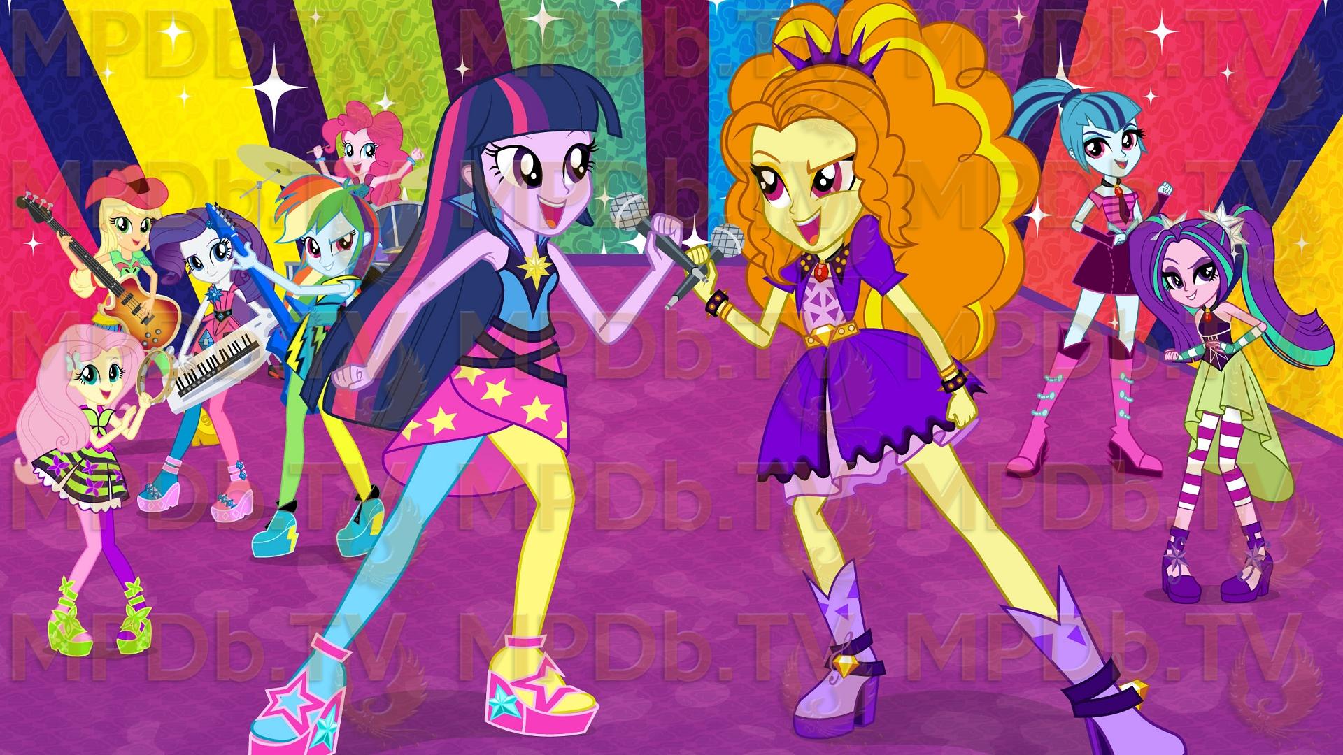 Les chanteuses de la cafétéria, Adagio Dazzle, Sonata Dusk et Aria Blaze, ayant trouvées l'origine de cette magie, s'inscrivent au lycée en tant qu'étudiantes mais aussi comme participantes au concours. Elles apparaissent sous le nom "Les Dazzlings". Grâce à leurs voix, elles envoûtent un à un les étudiants excepté Les Rainbooms et Sunset Shimmer car leur chant n'a pas d'emprise sur elles. Le concours devenu une véritable bataille de chant, elles vont faire contacter Twilight afin d'obtenir son aide pour rétablir l'harmonie dans leur monde.