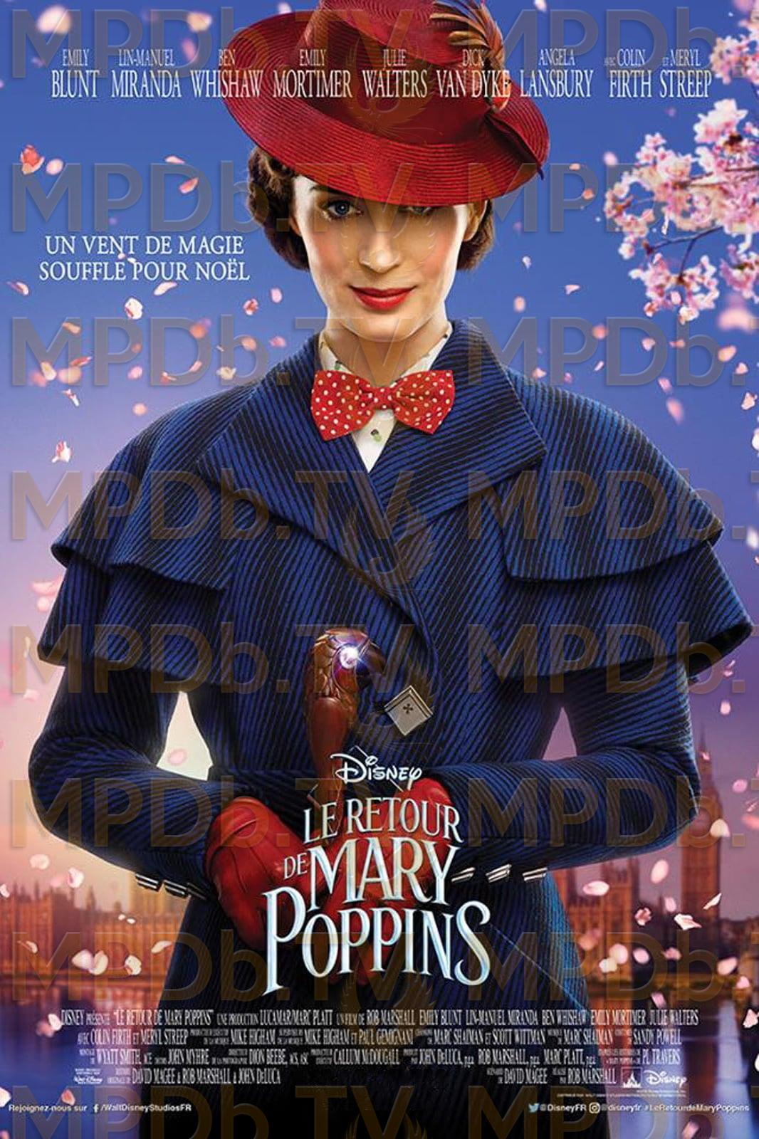 Michael Banks travaille à la banque où son père était employé, et il vit toujours au 17 allée des Cerisiers avec ses trois enfants, Annabel, Georgie et John, et leur gouvernante Ellen. Comme sa mère avant elle, Jane Banks se bat pour les droits des ouvriers et apporte son aide à la famille de Michael. Lorsque la famille subit une perte tragique, Mary Poppins réapparaît magiquement dans la vie de la famille. Avec l’aide de Jack, l’allumeur de réverbères toujours optimiste, Mary va tout faire pour que la joie et l’émerveillement reviennent dans leur existence… Elle leur fera aussi découvrir de tout nouveaux personnages plein de fantaisie, dont sa cousine, l’excentrique Topsy.